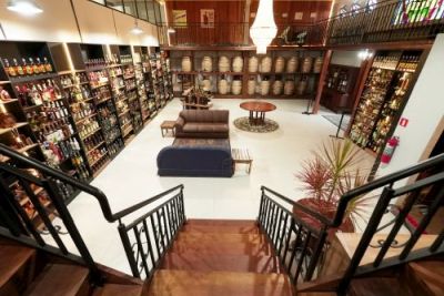 Um túnel de 15 metros liga o segundo andar ao subsolo onde é possível conferir a coleção particular do empresário Orlando Osmar Regis, com mais de nove mil rótulos. A experiência é guiada pela própria família que mantém no espaço um alambique em miniatura para demonstrar todo o processo de produção da cachaça. Para complementar o tour, os visitantes ainda podem conhecer e experimentar a cana- de- açúcar diretamente de uma pequena plantação situada no quintal do estabelecimento.