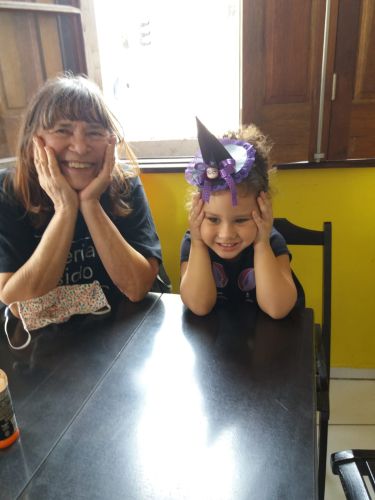 Bruxinha Jasmim veio da Paraíba para comemorar o aniversário da bisa, jornalista Adélia Lopes, e fez festa em dobro.