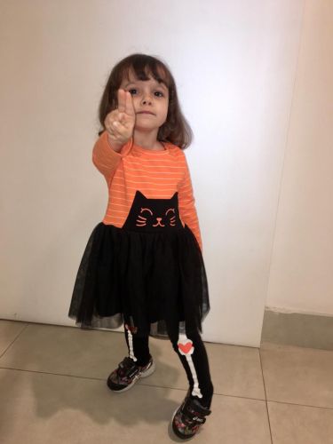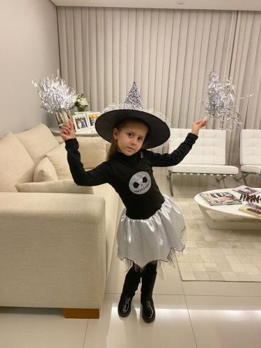 Uau! Petra chega arrepiando de bruxinha. Trouxe até um gato preto como convidado especial.