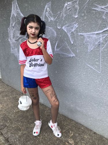 A estilosa Camila optou por uma assustadora namorada do Joker, o temido inimigo do Batman.