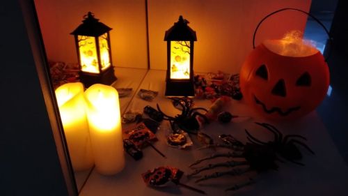 O cenário pode ser apavorante mas o objetivo é divertir crianças de todas as idades. Ambientação no apartamento dos Medvid.
