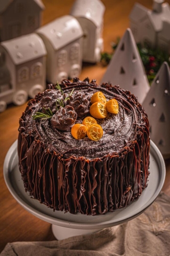 Julemanden Chokolade Cake . Decoração inspirada no tradicional tronco de pinheiro. / Divulgação