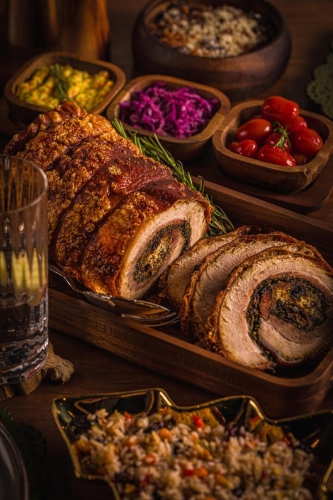 O Peru Assado, para muitos insubstituível na ceia natalina, é marinado por 24 horas e assado lentamente no forno de pedra, resultando em carne macia e douramento impecável e aroma que anuncia a noite especial que está por vir. Já há quem prefira uma Porchetta pururucada após seis horas de forno e recheio de farofa com bacon, damascos e uvas-passas.