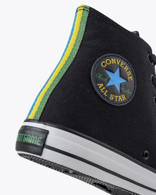 O icônico Chuck Taylor All Star, da Converse, entrou em campo com a seleção brasileira. A linha GOT Game recebeu uma parte superior em lona preta, e detalhes inusitados que transformam o par. As laterais são bordadas, enquanto o patch de estrela da marca no tornozelo, o Star Chevron na lateral externa, a tira traseira e o forro com estampas desconstruídas são coloridos com as cores da bandeira brasileira.