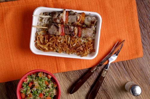 Um dos atrativos da marmita do Velho Oriente é a possibilidade de personalizar as porções: uma salada + uma carne + um acompanhamento variam de R$ 24,90 até R$ 34,50 dependendo da proteína escolhida. A sugestão da foto é o Michui de Alcatra