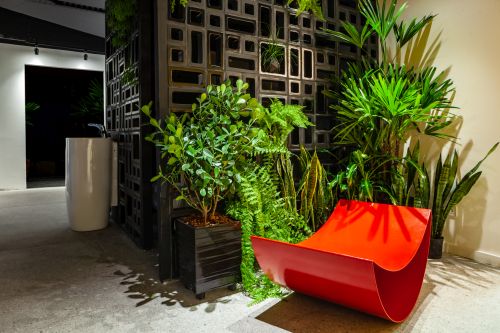 Existe algo mais inserido nas expectativas atuais do que cultivar a sua própria hortinha? Não importa o espaço, os temperos estão sempre à mão. A designer Lenira Condessa comprova esta possibilidade no seu projeto, que também serve como canto de leitura e de trabalhos manuais. Objetos sustentáveis – como a mesa de carretel e o teto composto por materiais de demolição – estão em sintonia com ações de preservação do meio ambiente. A horta conta com sistema de irrigação automatizado e aproveitamento da água de chuva.