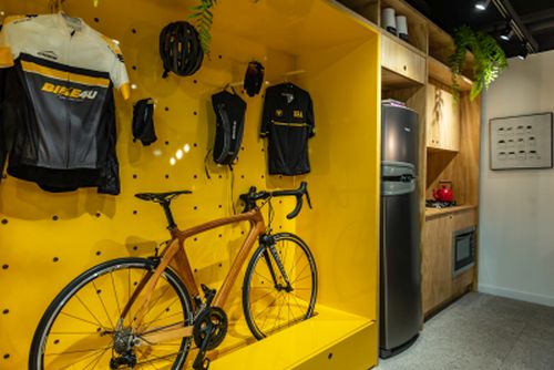 A bicicleta virou artigo de primeira necessidade nos sufoco do trânsito das metrópoles. Companheira inseparável dos adeptos da vida saudável e despoluída merece um espaço de destaque na ambientação do Estúdio do Ciclista, dos arquitetos Guilherme Ramalho, Janimara de Almeida e Magali Trombini, que também é urbanista. A brasilidade reflete-se em um volume central concebido em cobogós, criados na década de 1920 por Antônio Oliveira Coimbra, Ernest Augusto Boeckmann e Antônio de Goés – as duas primeiras letras do sobrenome deles formam o nome deste decorativo elemento vazado.