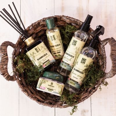 A marca conta uma diversificada linha que inclui mais de 70 itens veganos preparados manualmente além de sabonetes naturais e vegetais com argila e óleos essenciais, shampoo em barra low poo 100% naturais (sem embalagem) para todo tipo de cabelo, condicionador sólido, sabonetes variados de frutas, sais de banho, máscaras faciais, seruns hidratantes e anti idade, e produtos para spa. Uma das dicas da Nesh para espalhar um clima zen por toda a casa são óleos essenciais indicados pelo seu poder botânico para aumentar a imunidade e limpar o ar ambiente.
