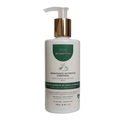 Rico em vitaminas, o hidratante nutritivo corporal Biozenthi ajuda a reter a água na pele promovendo uma hidratação prolongada ao formar uma película protetora que previne contra descamação e assadura.  Vegano e livre de glúten, o produto conta com vitamina E (emoliente e antioxidante) e óleos de copaíba, semente de uva e abacate Com efeito antioxidante, também recupera a pele das agressões ambientais.