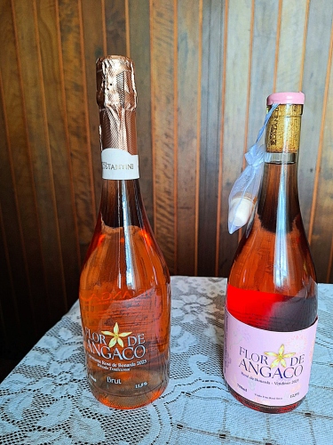 Em taça, o espumante rosé Flor de Angaco apresenta tonalidade delicada, aromas suaves de frutas vermelhas e notas florais. No paladar, revela acidez equilibrada e refrescante, ideal para acompanhar pratos leves, saladas, frutos do mar e sobremesas delicadas. Versátil, pode ser servido a qualquer hora do dia — do brinde de boas-vindas à sobremesa, do café da manhã à ceia. A sua apresentação é elegante, minimalista e moderna: em uma garrafa e rótulo transparentes, que permite apreciar a cor natural da bebida, valorizando a sua leveza visual e caráter estival.