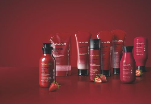Oito novo produtos compõem a Nativa SPA Morango Ruby, que embutem uma sedutora e suave fragrância, com destaque para as notas florais e amadeiradas em contraste com o dulçor da fruta: loção corporal (disponível em três volumetrias), esfoliante corporal, sabonete líquido, body splash, shampoo e condicionador.