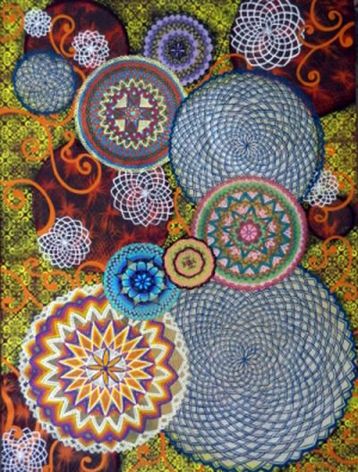 Carla Schwab trama rendas bidimensionais em mandalas.