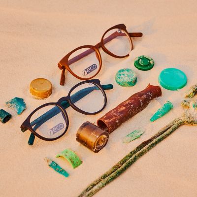 Armações para lentes de grau também estão incluídas na coleção ecológica. Antirreflexos, como a proteção da luz azul e violeta, são avanços nesta linha.