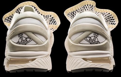 Já a Asics, bisando uma bem sucedida parceria, conta com a icônica marca britânica no DNA de uma de suas novidades para a temporada – a releitura do seu agora clássico Gel-Kayano 26 – com inspiração nos calçados de saco originais apresentados na coleção Westwood & (Malcolm) McLaren outono /inverno 1982-83, Nostalgia of Mud – o das Buffalo Girls. Os looks do desfile tiveram como base o fascínio de Vivianne por roupas das primeiras civilizações e foi nelas que encontrou referências para modelos confeccionados como uma peça de couro envolvendo o pé. No lançamento da Asics é utilizada uma capa de malha semitransparente que simultaneamente esconde e revela o tênis.