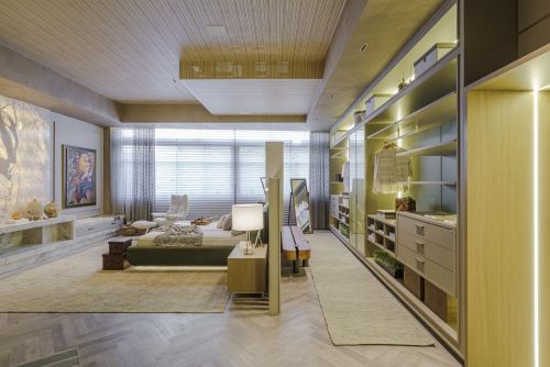 O ambiente é setorizado em quatro áreas: descanso, vestir, home office e meditação. O objetivo é aguçar os sentidos dos moradores e, para isso, a profissional escolheu texturas agradáveis, som relaxante e um aroma especial. Para ela, a Cama Origem, da Reveev, é o complemento ideal para conceituar o seu projeto.