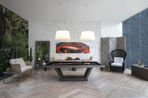 O ambiente despojado inclui uma mesa de bilhar – referência à vocação com que nasceu Las Vegas? – e móveis com fibras naturais. No mobiliário, destaque para a linha light gray, ratier de linho natural, veludo nos sofás, alguns toques de couro no baú e puffs. Sofá Jaen, poltrona Maros, mesa de jantar, La La Land, que se torna de bilhar, poltrona Palawan, mesa de chá Kiluan, puff Talu, cadeira Cage II e biombo Bronte entram na composição para tematizar o cenário do filme.