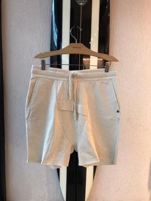 Bermuda masculina em cânhamo. Esta fibra longa e durável faz com que as características originais da peça se mantenham por mais tempo.
