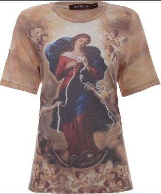 A camiseta-prece traz a estampa da Nossa Senhora Desatadora de Nós – responsável por libertar seus fiéis de questões difíceis. A edição limitada é composta por 50 itens, com valor de R$ 237,00 cada