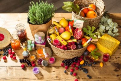 A Fruits &Vitamine é uma linha completa com produtos destinados aos cuidados dos lábios –  da preparação à finalização com cor e brilho. Para manter a sensação de lábios macios e renovados inclui quatro esfoliantes: Raspberry Crush, de framboesa; Marmalade Kiss, de tangerina; Fabulous Fig, de figo, e Meli-Melon, de melão. A esfoliação é facilitada por conter pedaços das frutas e/ou sementes dos próprios ingredientes presentes nos produtos. As fórmulas trazem ainda extrato ou óleo das frutas e contêm uma fragrância deliciosa inspirada no aroma natural de cada uma. Não surpreende que um alerta acompanhe os itens da linha: NÃO INGERIR. Este produto não é um alimento, mas um cosmético.