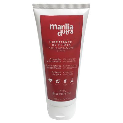 Fruta rica em vitamina C, zinco e flavonoides, substâncias de alta ação antioxidante. O hidratante corporal de Pitaya Marília Dutra foi desenvolvido a partir de pesquisas feitas pela Biozenthi para incluir esta fruta na formulação de cosméticos. O produto possui alta ação hidratante e antioxidante devido aos nutrientes presentes na pitaya, que deixam a pele suave, macia e aveludada. Também minimiza os danos provocados pelos radicais livres prevenindo o envelhecimento de rugas, linhas de expressão e flacidez.