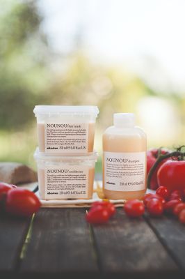 A Davines, de procedência italiana, pesquisou e encontrou um ingrediente inusitado para regenerar os cabelos danificados por processos químicos ou ferramentas térmicas: o tomate Fiaschetto. O fruto fornecido por um pequeno produtor, Mario di Latte, integrante do movimento slow food do seu país, entrou na fórmula da família  Nounou, que conta com shampoo, condicionador e máscara.  O trio  integra a linha de cuidados diários Essential Haircare, que inclui nove famílias, indicadas para solucionar problemas específicos de cada tipo de cabelo. O extrato retirado da polpa do tomate tem propriedades tonificantes e nutritivas. É rico em carboidratos, proteínas e vitamina C que exercem ação antioxidante sobre os fios.