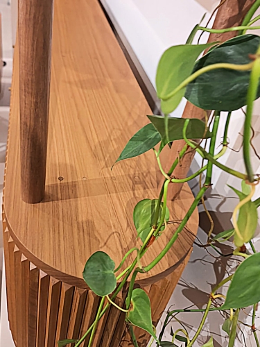 Biofilia, tendência em projetos de interiores, abraça a estante que com o seu elaborado trabalho de madeira personaliza e confere bem-estar a ambientes de trabalho.
