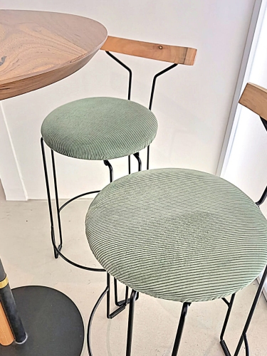 A delicadeza das linhas das banquetas contribui para que o conjunto se adapte aos mais variados estilos de espaço. Este charmoso cantinho compõe a decoração do Café WoodSkull + AMU.