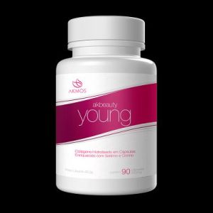 O colágeno Young, de Akmos, é um suplemento de colágeno hidrolisado em cápsulas que combate o envelhecimento precoce da pele, proporciona ossos e dentes mais resistentes e atua na manutenção das cartilagens. O produto também diminui as marcas de expressão, previne e trata estrias.