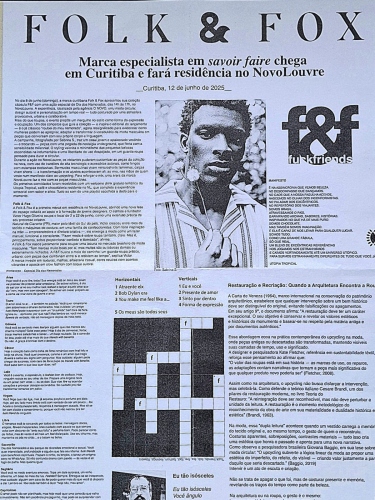 Com um evento, divulgado através de uma press media – designed by O Novo -, a Folk & Fox, uma newborn marca curitibana, apresenta-se ao mercado expondo suas credenciais. A assinatura é do estilista Victor Hugo Oliveira, que desenvolveu uma coleção cápsula para marcar sua residência no NovoLouvre – que vai até  22 de junho – dentro da nova fase do espaço voltada ao apoio e à formação de jovens designers. Uma mini temporada que ele define como uma extensão prática de seu processo criativo.