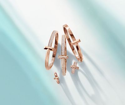 As joias Tiffany T1 combinam linhas limpas e formas gráficas com novas proporções elegantemente angulares e diamantes. Envolvendo o pulso, dedo ou pescoço, o símbolo ‘T’ forma um círculo ininterrupto que representa a força individual e a auto capacitação. Uma barra chanfrada inovadora com um fecho sutil é integrada perfeitamente no avesso.