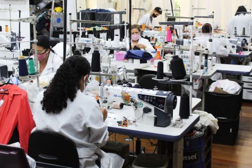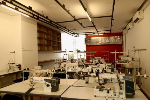 Pensando em reunir as duas bases necessárias para a produção de roupas e seus complementos – criação e execução – Amir Slama reuniu em um único local loja, escritório de criação, ateliê, confecção e até um café, o Slama, dirigido pela chef Bárbara Farina. No ateliê, no andar superior do espaço, foram instaladas 21 máquinas de costura da Andrade Máquinas entre retas, overloques, zig zag, galoneiras e elastiqueiras, É a moda produzida de forma inteligente, sem muitos resíduos, economia de energia e ergonomia pensada para oferecer conforto e agilidade às costureiras.