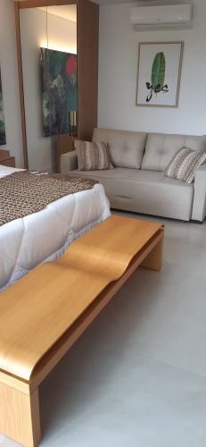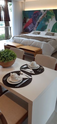 O apartamento modelo do Capivari Residence tem projeto de interiores assinado pelo escritório Arquitetare – de Elaine Zanon e Cláudia Machado. Todas as unidades terão no mínimo um quarto, sala e uma minicozinha.