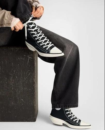 Um clássico dos anos 50 e 60 o bico fino, principalmente, nos sapatos de salto alto – por exemplo, no sedutor Scarpin – ressurge de forma inusitada no lançamento da Converse: o sneaker Chuck 70 Pointed. Com um visual marcante, lona resistente, amortecimento OrthoLite e salto robusto de 38mm, o modelo mantém o DNA dos Chucks, mas com um shape repaginado e cheio de atitude. O tradicional patch no tornozelo e a etiqueta All Star garantem a sua autenticidade e registram seus passos por décadas.