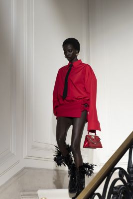 Segundo a essência captada nos looks desfilados dias atrás na Paris Fashion Week, “um código de vestimenta pode liberar e arquétipos podem ser reimaginados. Símbolo do poder masculino, emblema da ortodoxia e da restrição, nossos preconceitos sobre a gravata tornam-se arquitetura teórica para uma coleção que brinca com regras, emancipando o significado. Seu conceito ideológico é desafiado, em última análise, contradito e totalmente redefinido. Os significantes são reapropriados, transformando-se em diferentes vestimentas: a gravata é desamarrada, solta, deslizando entre a linguagem formal das roupas, entre o dia e a noite. A camisa e a gravata podem se fundir, transformando-se em diversas combinações de vestidos e batas, enquanto essas vestimentas são usadas com saias longas ou curtas, tanto por homens quanto por mulheres”.