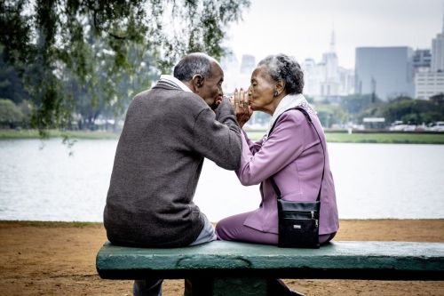 Juarez e Heloisa se conheceram há 56 anos em São João Del Rey, em Minas Gerais. Para ele, até hoje abraços e carinhos são sinais de amor de conforto. O casal apaixonado – exemplo da importância do toque para manter o equilíbrio físico e emocional –  foi incluído no relatório da Nivea O Estado do Toque Humano, de 2020. Foto: Oliver Lassen.