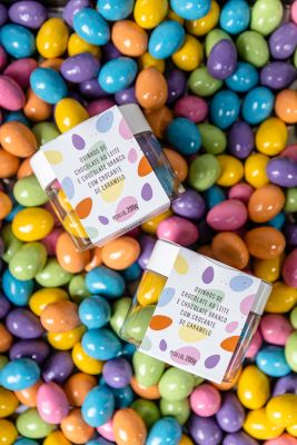 O pote sortido traz ovinhos maciços de chocolate ao leite e branco. Já os coelhos de chocolate, também maciços, são inteiramente feitos com 230 gramas de chocolate branco ou preto. Para completar a cesta de Páscoa, os bombons de coelhinho também levam um merengue cremoso de mel, que é a base dos torrones da Hagi e recoberto com chocolate ao leite.