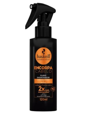 O fluido engrossador Encorpa Cabelo, da Haskell, proporciona hidratação aos cabelos com afinamento. Sua fórmula concentrada promove a redensificação dos fios, além de condicionar e promover a maciez. A linha foi desenvolvida com ácido hialurônico para engrossar e reestruturar os cabelos finos e ralos, aumentando a espessura e revitalizando o couro cabeludo.