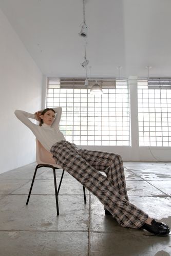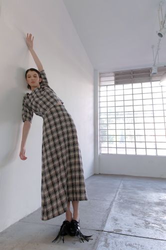 O xadrez e o exercício arquitetônico são os pontos centrais da coleção, que traz vestidos, casacos, tops, chapéus, além das bolsas em parceria com a designer Elyane Fiuza.
