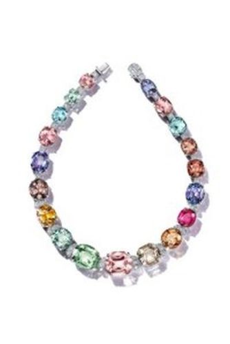 Colar em platina com gemas coloridas e diamantes.