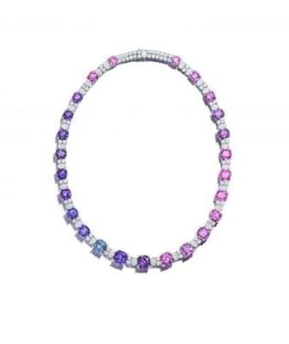 Colar em platina com safiras rosa e roxa.