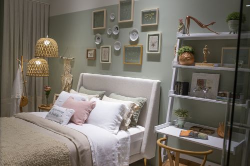 Com a recomendação de se permanecer mais tempo em casa, ambientes confortáveis, bem iluminados e, se possível, integrados à natureza são bem-vindos. Neste quarto, o aconchego espalha-se por todos os cantos: pequenos vasos de plantas naturais ajudam a reduzir o stress e a ansiedade, cores suaves dão a sensação de tranquilidade e fotos de viagens e da família resgatam momentos felizes que atraem boas energias. Até um pequeno home office conquistou o seu lugar para que tarefas do trabalho sejam realizadas em um espaço agradável e acolhedor.