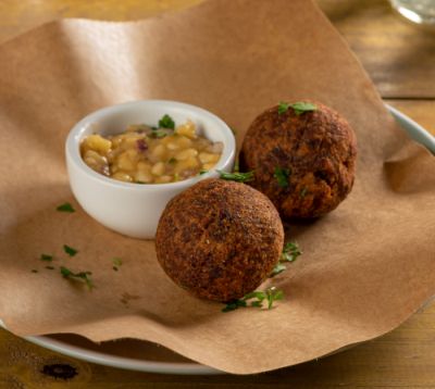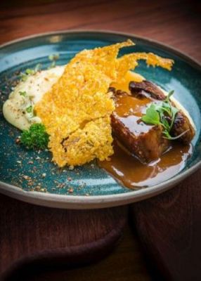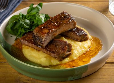 Duas sugestões de entrada iniciam a sequência: o Pastel de queijo colonial com cebola caramelizada ou o Bolinho de barreado com vinagrete de banana. Já como prato principal, as escolhas são a Costelinha de porco com purê de mandioquinha e salada de agrião, ou Kafta de siri com hommus e saladinha grega. De sobremesa, o Mousse de maracujá brûlée.