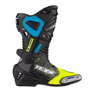Os macacões têm caimento slim e design moderno que destacam nas estampas gráficos de mapas topográficos dos principais autódromos do mundo. O nível de segurança é altíssimo – possui protetores internos de absorção de impacto com nível de Certificação Europeia. A bota pode servir de referência a um modelo de calçado ou impactar em um desfile compondo o styling de uma marca direcionada ao público jovem e ligado na moda urbana. No item segurança conta com sistema de articulação externa rígida, além de diversos protetores e placas de torção. Com fechamento duplo, possui zíper e velcro e também uma presilha que permite uma regulagem mais fina sem a necessidade de remover o calçado para ajustar. Outros de seus recursos são os charmosos slider raspador de alumínio removível na parte frontal e protetores na parte traseira e calcanhar.