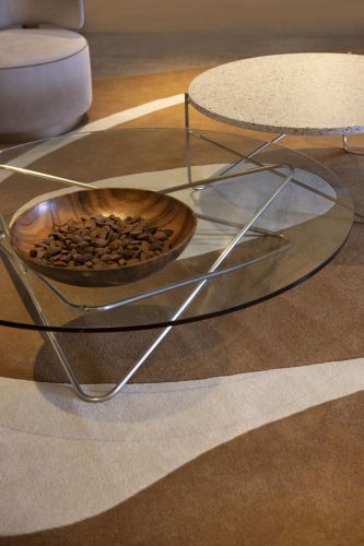 As funcionais mesinhas de centro, lateral e de apoio reforçam as inspirações seguidas para atender as expectativas atuais de moradia. Nas peças assinadas por Patrícia Anatassiadis para a Artefacto elas chegam com formatos ousados possibilitados pela combinação de materiais como vidro e metal, vidro e pedra, pedra e metal, pedra e madeira. Casamentos possíveis e com final feliz!