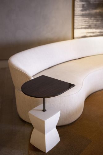 Colhido direto na fonte do Abstracionismo alemão do século 20, é uma homenagem ao artista Jean Arp, reconhecido pela organicidade das formas e padronagens livres, soltas, pluriformes. A ergonomia e a funcionalidade são resultado de um complexo estudo de relevos escultóricos, geometrias desconstruídas, luzes e sombras. A volumetria hiperbolizada do corpo humano – tão característica das esculturas e pinturas de Jean Arp -se desdobra em peças acolhedoras, humanizadas. Ângulos imponderáveis transportam o imaginário coletivo para o mundo natural limpo das artificialidades da civilização industrializada.