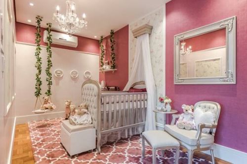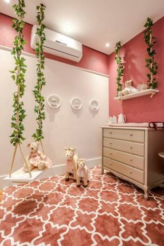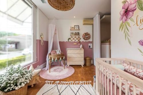 O estilo provençal foi escolhido para conferir romantismo ao espaço. Ele está presente no mobiliário com acabamento em folha de prata que faz composição com as cores rosa bebê, marsala e verde pastel, que aparecem nos detalhes lúdicos para relembrar a infância. Balanço de cordas, com folhagens, tricô e papéis de parede com estampas de pássaros, flores e linho marsala arrematam o conceito do projeto.