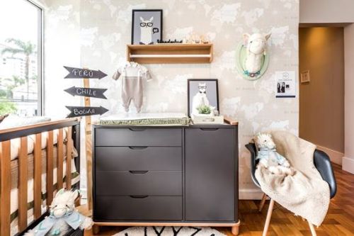 A cultura da América Latina foi traduzida em um quarto de bebê com atmosfera e conceito mais contemporâneos, co a utilização de tons claros, papel de parede com mapa-mundi, tecidos étnicos e as queridinhas lhamas, A proposta é da arquiteta Bruna Souza e da designer Emanuella Leite para homenagear a influenciadora digital Babi Muniz, que está grávida de seu primeiro filho. O mobiliário foi escolhido para acompanhar o crescimento da criança. O berço 3 em 1, por exemplo, possibilita o seu uso por mais tempo.