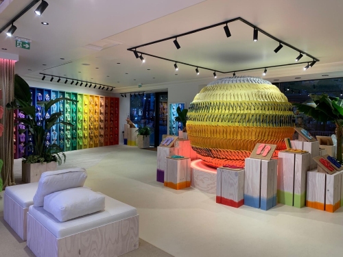 A pop-up store da Havaianas na Champs Elysées, com decoração moderna e paleta de cores vibrantes, tem como destaque o display central formado por chinelos representando o sol e sua conexão com o Brasil. Nas prateleiras, produtos icônicos da marca, como os modelos com bandeirinha verde e amarela, que fazem parte do uniforme oficial dos atletas brasileiros. Desde junho ativações exclusivas estão acontecendo  na loja, como ateliês de confecção de tornozeleiras, bares de smoothies e sorvetes e distribuição de bolsas e camisetas  brazilian core. O espaço ficará aberto até o encerramento dos Jogos Paralímpicos.