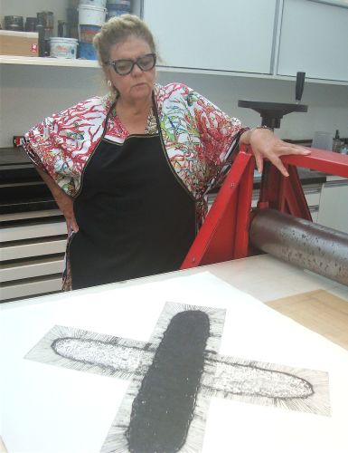 A artista visual e gravadora curitibana integra com dez gravuras a primeira grande coletiva do novo espaço cultural, que inclui também obras de outros artistas paranaenses.
