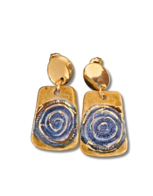 Brincos Redemoinho dourado e azul em cerâmica, da Sutilezas da Ale